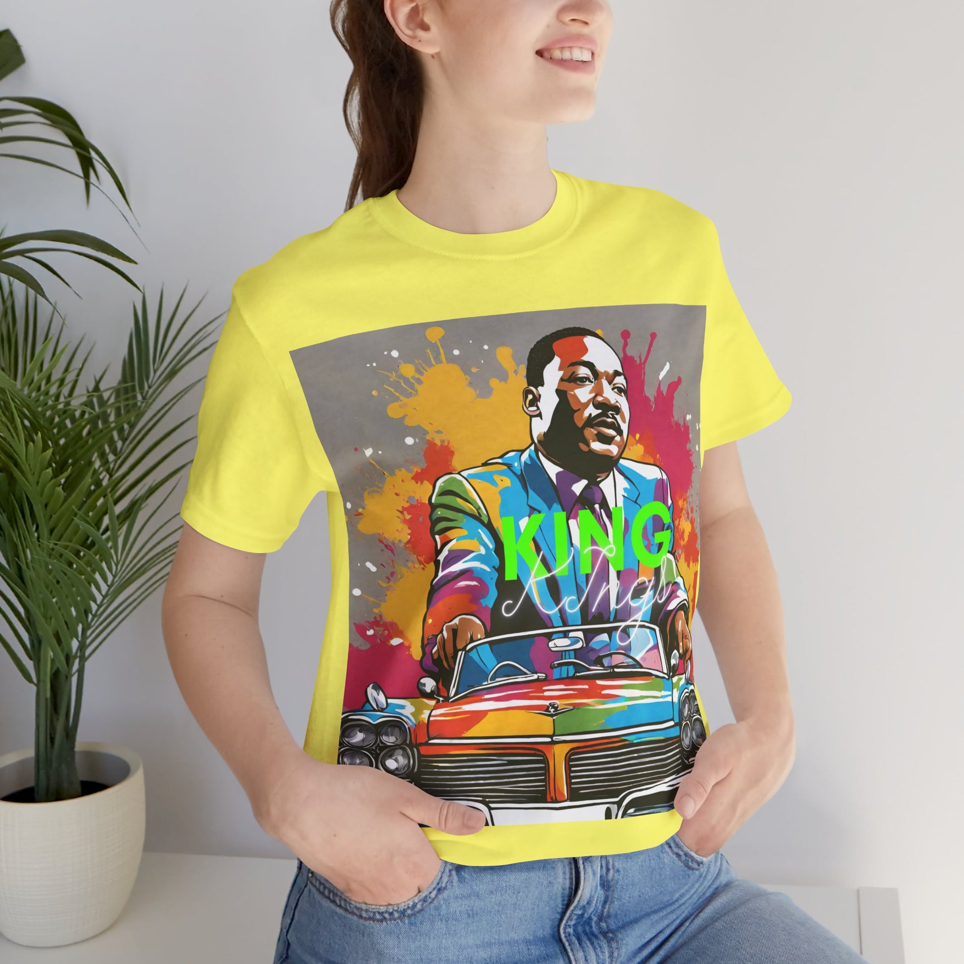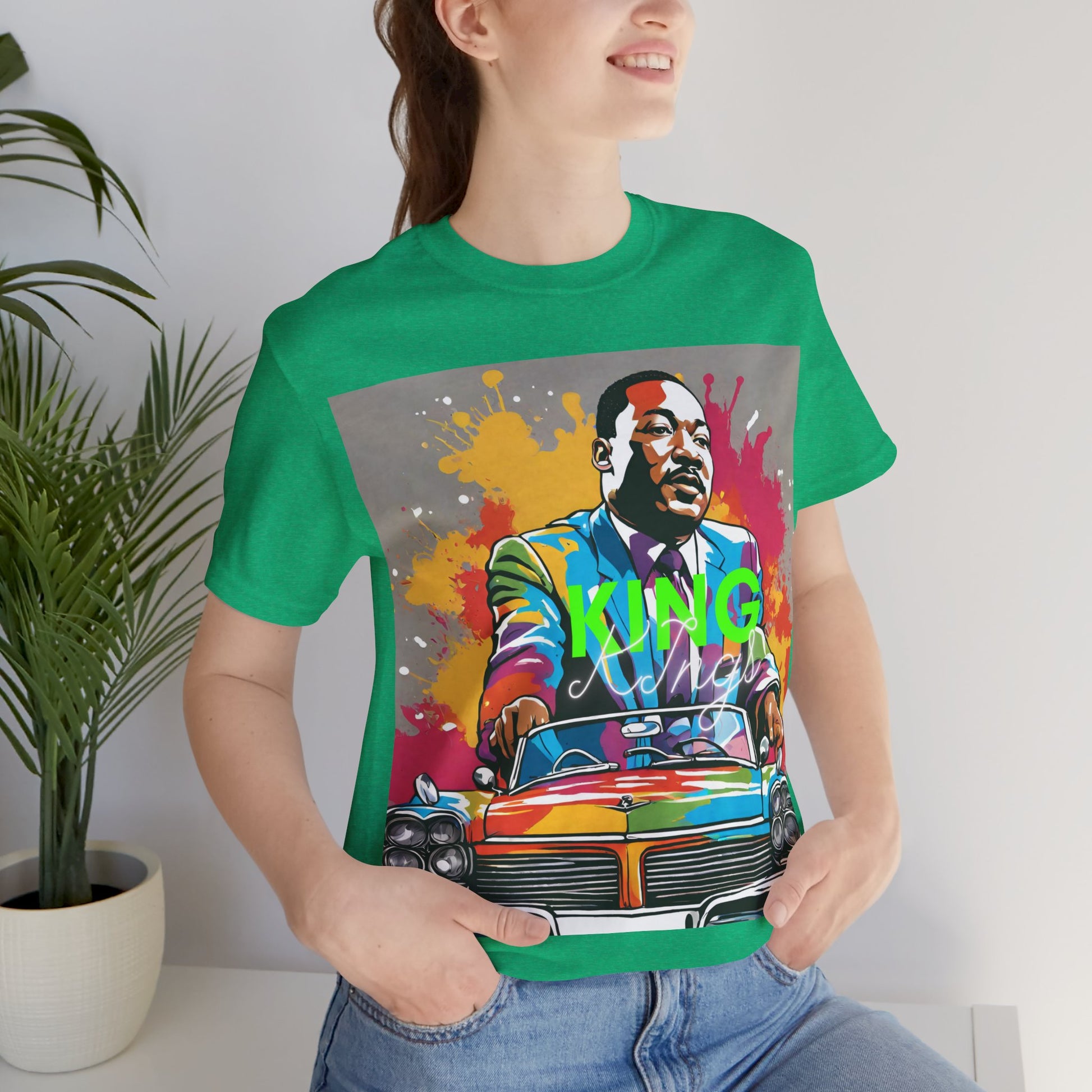 This is a special Martin Luther King! unisex, short-sleeved classic! The tee fits like a well-loved holiday favorite! It's seasonal, and these designs will make you fall in love with them over and over again! These t-shirts have ribbed knit collars to bolster shaping. The shoulders have tapered for a better fit over time. Dual side seams help maintain the garment's shape longer.